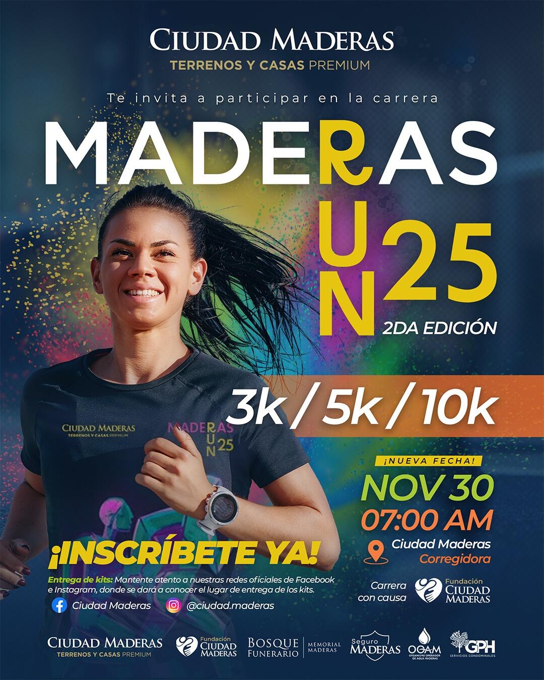 Carrera Maderas Run 2025, un evento deportivo familiar con causa que busca unir a la comunidad en un ambiente de convivencia y solidaridad. La carrera reunirá a 500 corredores en tres distancias diferentes —3K, 5K y 10K— además de cientos de asistentes que acompañarán a los participantes y disfrutarán de un espacio lleno de experiencias. En su edición 2025, Maderas Run se realiza en apoyo a Fundación Maderas, reforzando nuestro compromiso social.